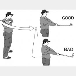 水平素振りがシャフトの角度を正しく保つ感覚を養う
