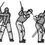 インパクトはアドレスの再現。「アドレスの位置で頭と手の位置を動かさずに腰を入れたのがインパクトである」ことについてはすでに書いた。
