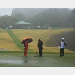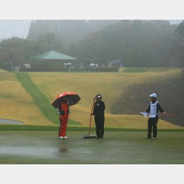 今大会は初日からインターネットで生中継された。時折、強い雨が降り、試合は何度も中断し、フェアウエーはいたるところに水たまりができた。カジュアルウオーターにボールが入るたびに救済処置を受けていたが、その時、プロゴルファーによる耳を疑うような解説があった。
