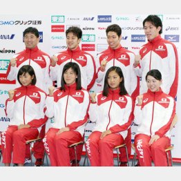 11日、日本水連は先の日本選手権の結果を基に競泳のリオデジャネイロ五輪代表34人を発表。都内で会見した日本代表の平井伯昌監督は「複数の金メダルが目標。初日が重要。男子400メートル個人メドレーで勢いをつけたい」と男子のエース的存在でともに21歳の萩野公介、瀬戸大也の2人に期待を寄せた。