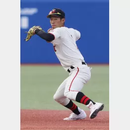 右投げ、左打ち。50メートル5秒9の俊足で184センチの大型遊撃手だ。「3番・遊撃」で出場した13日の国学院大戦では、4打数無安打に終わったが、ネット裏に集まったスカウトの高い評価は変わらなかった。