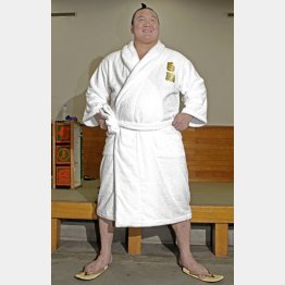 支度部屋の風呂場から出てきた白鵬(31)の姿に、報道陣の目がテンになった。そこにいたのは純白のバスローブをまとった横綱。胸には「白鵬」と金色の刺繍が入っていた。