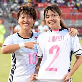 パプアニューギニアで行われているU-20女子W杯(20日)で日本はカナダを5-0で下し、グループリーグB組1位で決勝トーナメント進出を決めた。プレーヤーオブザマッチに輝いたMF長谷川唯(日テレ・ベレーザ)は試合直後、持ち込んでいた盟友のユニホームを着た。「背番号2 SHIMIZU」。同じベレーザで共に成長してきたDF清水梨紗は、大会直前のケガで出場を断念した。