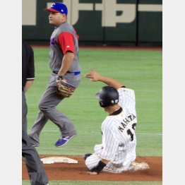 ――キューバ戦、1点リードの五回1死一塁で中田が二盗を決めた。