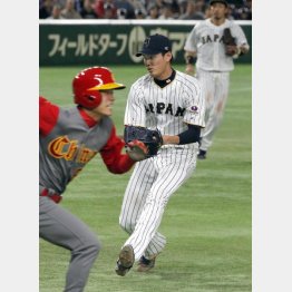 10日の中国戦。四回から2番手で登板し、2回無失点に抑えた藤浪(阪神)のことだ。