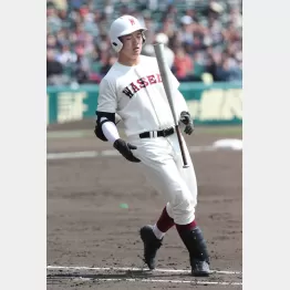 早実は1点リードの三回に守備が乱れた。1死から9番安田に左二塁打される。早実先発・服部の暴投で三進されると、2死満塁から4番遠藤に右越え適時三塁打を浴びて1-3と逆転を許す。右翼手が目測を誤り、追いつけなかった。