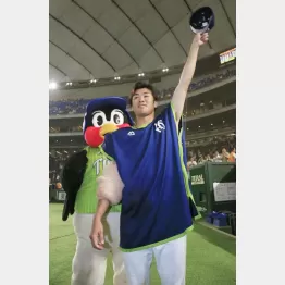 17日の巨人戦、ヤクルトの由規(27)が7回2安打無失点の好投で今季初勝利を挙げ、満面の笑みを見せた。