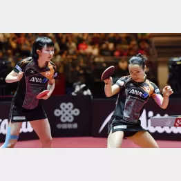 5日、世界卓球の女子ダブルス準決勝に登場した伊藤美誠(16)、早田ひな(16)。中国ペアに3セットを連取された後、1セットをもぎ取るのが精いっぱい。超高速ラリーに力負けし、16歳ペアは銅メダルに終わった。