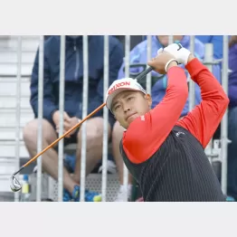 アウト発進の松山は、ドライビングアイアンを手にした1番でいきなりティーショットを左に曲げてボギー発進。
