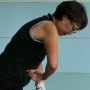 かかとを上げてアドレス 前傾姿勢で体重移動がスムーズに