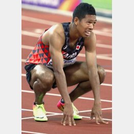走り終えたサニブラウンは、両手で顔を覆ってしゃがみ込むと、しばらく動けない。電光掲示板でタイムと着順を確認すると、悔しそうに表情をゆがめた。