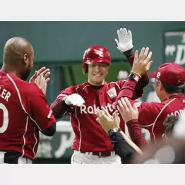 18日、「1番・遊撃」でスタメン出場した楽天の茂木栄五郎(23)が、15日の西武戦に続くCS2本目の先頭打者弾。梨田監督が「あれが茂木の魅力。相手に強烈なインパクトを与え、チームを勢いづかせた」と言ったとおり、先発の塩見が6回1失点の好投。一発で試合の流れを引き寄せた。