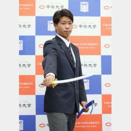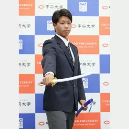 会見後の写真撮影では集まった取材カメラマンから、将来の侍ジャパン入りを目指すという演出でオモチャの刀を持たされたり、得意だというイラストを白球に描かされたりと、さまざまなポーズのリクエスト。そのたびに硬い表情で求めに応じていた。