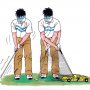 なぜ右手でスイングするかというと、利き手である右手でボールを叩いた方が、遠くに飛ぶと勘違いしているか…