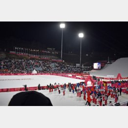 葛西(紀明)選手のジャンプを五輪の舞台で見られるチャンスはそうそうない。ネットで席位置を確認し、ジャンプ台に向かって左側のスタンド席(座席)を20万韓国ウオン(約2万円・立ち見席は約1万円)で買い、現地に行きました。入り口でチケットを見せると、なぜか足止めをくった。「もしや、偽造チケットか?」と心配しましたが、「この席は見づらいので、右側のスタンド席と交換する」というので、おかしいなとは思いつつも従いました。韓国ではジャンプのトップ選手がいません。競技開始が22時前という時間も影響したのでしょう。前売りは完売も空席があり、観客は想像していたよりも少なかった。