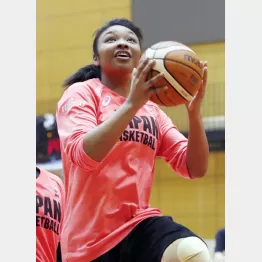 昨24日、女子代表は都内で合宿を公開。初めて代表に呼ばれたオコエはベテランに交じって、ミニゲームなどで汗を流した。