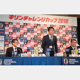 ハリルホジッチ監督解任後、西野朗監督の「実質的に初めてのメンバー発表」とあって、この日の記者会見は大きな注目を集めた。しかし、フタを開けてみると代表でのパフォーマンスが低下しているMF本田、所属クラブで出番に恵まれないMF香川、井手口、FW岡崎、浅野が選ばれ、ポルトガル1年目で10得点のFW中島、ベルギーで活躍しているFW久保とMF森岡、17年J得点王のFW小林も外れた。