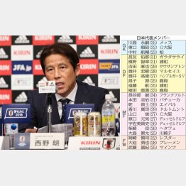 ハリルホジッチ前監督は、ビッグ3のパフォーマンス低下を理由に世代交代を推し進めようとしたが、スポンサー企業、大マスコミ、代理店の意向を忖度した日本サッカー協会が解任に踏み切り、J1名古屋監督を15年シーズンで辞めて以来、現場を離れていた西野朗監督を後釜に指名した。