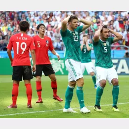 2点差勝利で決勝トーナメント進出が決まるドイツは序盤からボールを圧倒的に支配しながら、フィニッシュの精度を欠いた。後半48分に左コーナーキックから先制を許すと、51分には捨て身で敵陣に上がっていたGKノイアーがボールを奪われ、ロングパスを拾った孫興民(25=トットナム)に無人のゴールに叩き込まれた。終始、試合の主導権を握りながら、アディショナルタイムで2点を奪われ、19度目の出場で初めて決勝トーナメント進出を逃した。