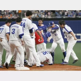 29日現在、首位広島と8.5ゲーム差。村田ヘッド兼バッテリーコーチは前日、広島に3タテを食らった後の緊急ミーティングで「残り73試合ある」とナインにハッパをかけたという。その昔、巨人や西鉄などで監督を歴任した名将の三原脩監督(故人)は「逆転優勝の限界ゲーム差は、残り試合の10分の1である」と言った。