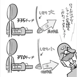 例えば、同じ硬さのシャフトでも、先端径が細いほど振った時に軟らかく感じ、太くなるほど振った時に硬く感じます。