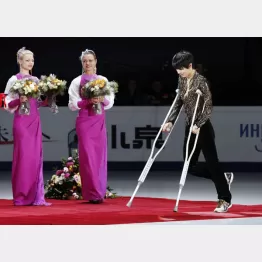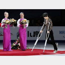 羽生が右足首を痛めたのは、これが初めてではない。昨年11月のNHK杯直前の練習中に右足首を捻挫。右足関節外側靱帯損傷で、今年2月の平昌五輪ではぶっつけでショートプログラムに臨み、金メダルを獲得。しかし、競技中に右足関節外側靱帯に加え、腓骨筋腱を損傷していた。今大会後に羽生は「弱かった右足首がさらに緩くなっている」と吐露。靱帯がほとんど残っておらず、すぐに骨に当たることや、無理をすると別の箇所の靱帯が切れる状態であることを明かしたが、引退は否定した。