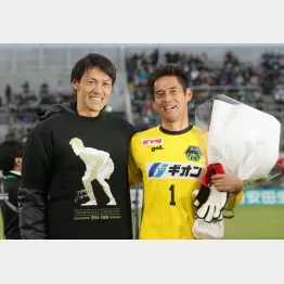 地元開催W杯を前に守護神の座を争っているGK楢崎正剛(名古屋)について「僕にとって特別な存在です。ナラがいたからこの年まで続けることができました」と現役最後の試合(2日のJ3鹿児島戦)前に川口は話してくれた。結局、日韓W杯は楢崎が正GKを務めたが、4年後の06年ドイツ大会ではグループリーグ3試合で川口が日本のゴールマウスを守った。