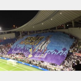 準決勝で南米王者リーベルプレートに挑んだアルアインのサポーターは、ゴール裏に人気オンラインゲーム「PUBG」をオマージュした大横断幕を掲げ、そこに「MISSION IMPOSSIBLE」と大書し、さらに「IM」の上に×を付けて「可能なミッション」であることをアピールした(写真=撮影・河治良幸)。