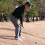 左からフェードで回していく方法、右からドローで狙う方法もありますが、ここは木の上を越えて真っすぐピンを狙ってみます。