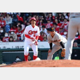 昨5日、巨人とのオープン戦に途中出場したドラフト1位ルーキーの小園海斗(18=報徳学園)。本拠地初実戦となったが、四回から遊撃の守備に就くと、坂本勇の打ったゴロを軽快にさばき、第2打席では捕手前に転がるボテボテの当たりを俊足で内野安打にした。