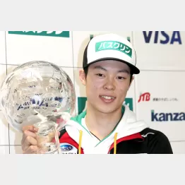 W杯覇者に贈られるクリスタルトロフィーを手に会見した小林陵。今季最終戦で日本記録を更新する252メートルを飛んだだけに、来季は「世界記録の253・5メートルを超えたい」とし、W杯総合連覇に向けては「簡単なことではないけど、もちろん目指します」とさらなる飛躍を口にした。