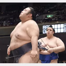 仕切りから負傷した右ヒザを気にするそぶりを見せていた新大関。立ち合いの当たりをかわされてブレーキをかけようとするものの、右足を滑らせ、体勢を崩してしまう。そこをはたかれ、あっけなく土俵に落ちた。