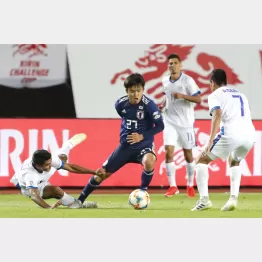 FW大迫(29=ブレーメン)からパスを受けた久保は、DF2人に挟まれながら利き足の左足アウトでスルスルッと抜け出し、左足を鋭く振り抜いて強烈なシュートをお見舞いした。スタンドは大盛り上がりである。