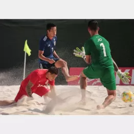 ビーチサッカーの日本代表が28日、兵庫県明石市大蔵海岸公園で行われた国際親善大会で強豪タヒチ代表と対戦。4-4の同点から突入したPK戦を5ー4で制し、格上相手に勝利を収めた。