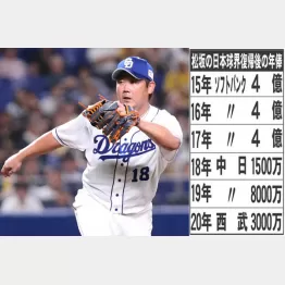 3日、西武は中日を退団した松坂大輔(39)の獲得を発表。1年契約で年俸は3000万円。今季はわずか2試合で0勝1敗、防御率16・88と低迷しただけに、中日でもらっていた8000万円からの大幅ダウンとなった。