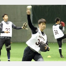 そのキャッチボールでは、同じ投手の同2位・太田(JR東日本)、同4位・井上(前橋商)ら他の選手が室内練習場内いっぱいに広がり、猛スピードの球を投げてアピールするのを尻目に、ゆっくり少しずつ距離を広げ、一球一球丁寧に投げ続けた。