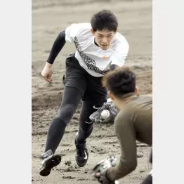 「見てみないとわからないんですけど、ある程度、30~40メートルくらいの強い、40メートルが遠投と言えるかわかりませんけど、遠投でまとまった、しっくりした感じがあれば、ブルペンに入ってもいいのかなと。キャッチャーを座らせなくてもいいし、正規の距離じゃなくてもいいので、マウンドの傾斜で練習することは、キャンプ中にあるかもしれません。それでも15日以降だとは思いますけど」