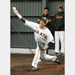 左足を上げる前に腕から始動する新フォームを披露。「まっすぐもコーナーに制球できたし、ボール自体も力強かった。質も良かった」と手応えを語れば、原監督は「リニューアルした感じはある。気分良く調整してくれればいい。リーダーだから」と目を細めた。