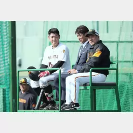 11日、巨人のキャンプを視察した侍ジャパンの稲葉篤紀監督(47)。原監督から、打撃ケージ裏の、通称「原タワー」に招かれると、「ウチの若大将」と紹介された岡本和真(23)、チームリーダーの坂本勇人(31)と談笑し、「五輪も頼むぞ」とゲキを飛ばした。