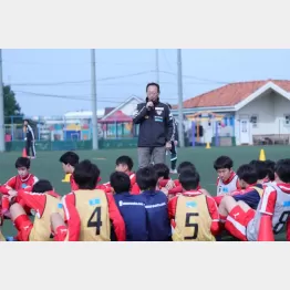 午前中は14歳の少年たちに実技講習を行い、午後は指導者向けに座学講習を実施。そこで岡田氏は、現役を引退した理由や愛媛のFC今治(今シーズンからJ3リーグに昇格)のオーナーに就任した経緯などを明らかにした。