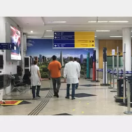 マリンガ空港内では掃除の女性もマスク着用していた。到着便に対応するためか、白衣を着た医者、検疫官らしき数人が到着口に消えていった。空港にはアルコール消毒液が設置され、到着便の情報が表示されている電光掲示板には<コロナウイルスの症状>が、それこそ子供にも分かるように絵で表示されている。