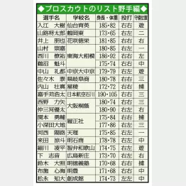全国に散らばった各地区の担当スカウトは高校生、大学生、社会人、BCリーグの選手を追い掛け、これはと思う有力選手をピックアップ。2月のキャンプ中に開かれるスカウト会議で、球団にリストを提出する。