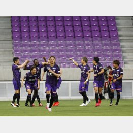 無観客試合で開幕したJ2の京都サンガの選手たちが、ゴールを決めた後に、本来ならサポーターが熱狂しているはずの誰もいないスタンドめがけてやってみせたこと。
