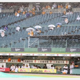 そんな中、勝ちを拾ったといわれるのが甲子園の阪神。2点リードで迎えた五回表2死二塁、先発の青柳が梶谷に適時打を浴びて1点差に。辛くも後続を断ったところで降雨中断となり、試合は結局、コールドゲームになった。「セーブ雨」で阪神は4連勝、選手もフロントも万々歳か。