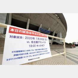 26日のJ1広島―名古屋戦が中止となった。