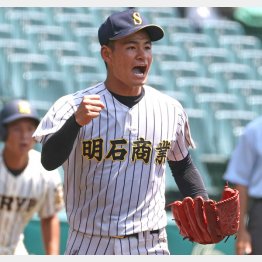 16日、今秋ドラフト1位候補の明石商(兵庫)・中森俊介(3年)が甲子園交流試合の桐生第一(群馬)戦で2失点完投勝利。速球は最速150キロをマーク、9三振を奪う内容にも笑顔はなく、課題ばかりが口をついた。