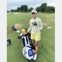 私のツアー会場での頼もしい相棒がヨネックスのクラブです。キャディーバッグにはウッド系がドライバー(キャリー235~240ヤード)、3番ウッド(同225ヤード)、3UT(195ヤード)の3本。アイアンは4I(185ヤード)からPW(125ヤード)まで飛距離10ヤード刻みで7本。ウエッジは48度(115ヤード)、52度(105ヤード)、58度(90ヤード以下)の3本です。それにパターがスコッティキャメロンのマレットタイプという14本構成で戦っています。