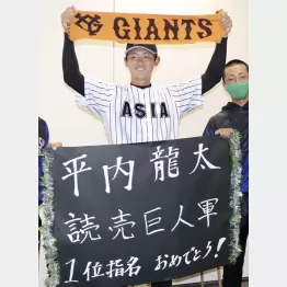 巨人は近大・佐藤を外した「外れ1位」として亜大の平内龍太(神戸国際大付)を指名した。
