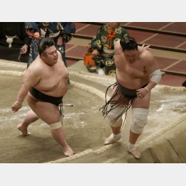 貴景勝の突き押し相撲は馬力が勝負。四つに組まれたら下位にも負ける。だから組ませずぶちかまし先手必勝。相手を土俵の外へ吹っ飛ばす。
