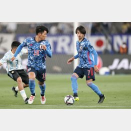 日本代表の目玉は、スペインでプレーするMF久保建英(19)とJ川崎でブレーク中のMF三笘薫(23)の攻撃系二枚看板が、どんなコンビプレーで五輪南米予選1位のアルゼンチンを苦しめるか?だった。三笘は2列目の左サイド。久保はトップ下からトップ、左右両サイドと自由に動き回りながら攻撃に絡んでいった。が、アルゼンチン選手の執拗な守備に手を焼き、特に三笘はJリーグで見せる鋭い突破力が影をひそめ、首をかしげるシーンも多かった。